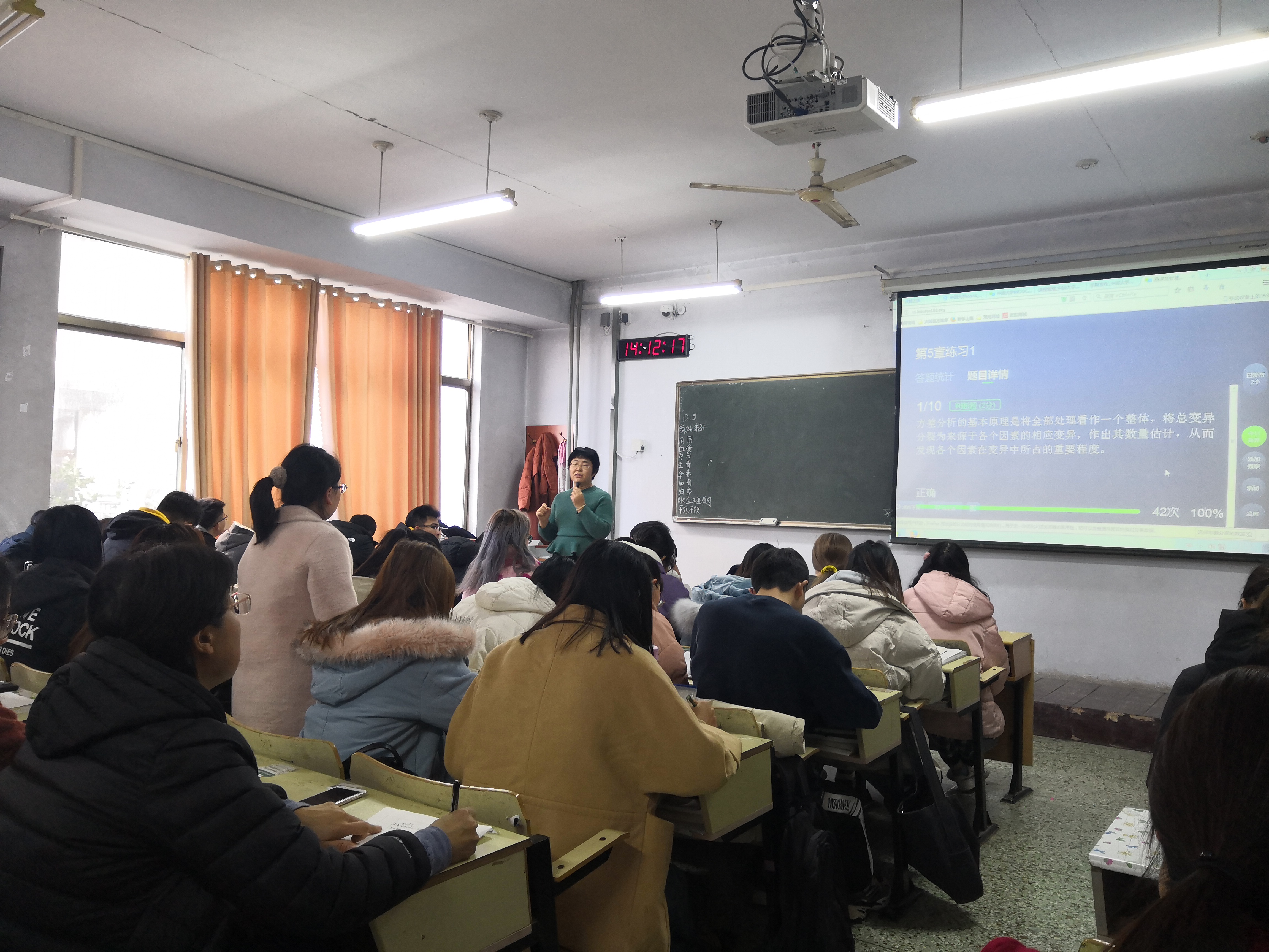 郭新梅通过线上中国大学MOOC平台,检查了同学们线上学习成果,以所学知识点相关练习题为线索,展开进一步学习,她通过对每一道练习题的相关知识点进行小组提问,检验同学们的掌握情况,并对重点、难点进行梳理和强调,在讲解过程中,郭新梅穿插回顾课堂伊始试验设计的方法,从方差分析的原理入手,强化了关键知识点,通过现场线上答题进一步帮助同学们融会贯通。线下课堂上,同学们分小组汇报了方差分析相关知识点,通过整理知识、自我表达,实现了对知识的强化和内化。课后,郭新梅在中国大学MOOC平台上发布了拓展知识和课后作业,通过“线上+线下”混合的方式,促进了教师教学和员工学习的主动性,提高了教学效果。