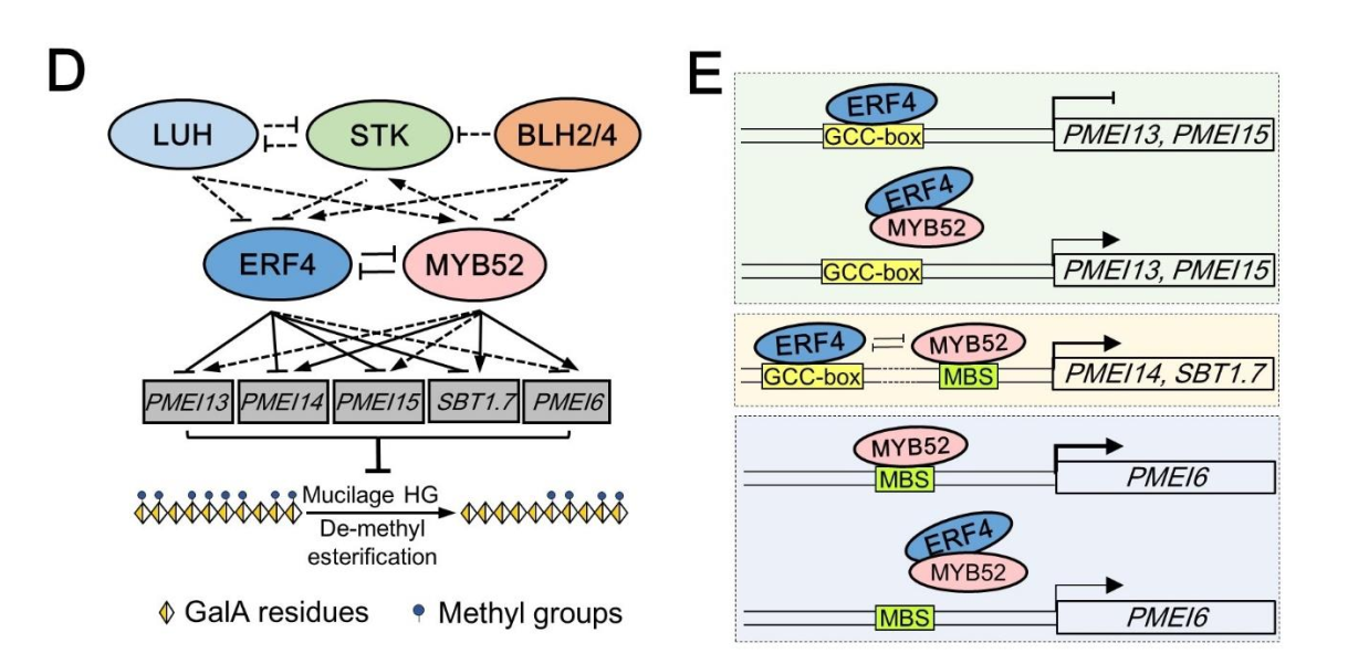 图1 ERF4与MYB52互相拮抗调控果胶质的去甲酯化过程