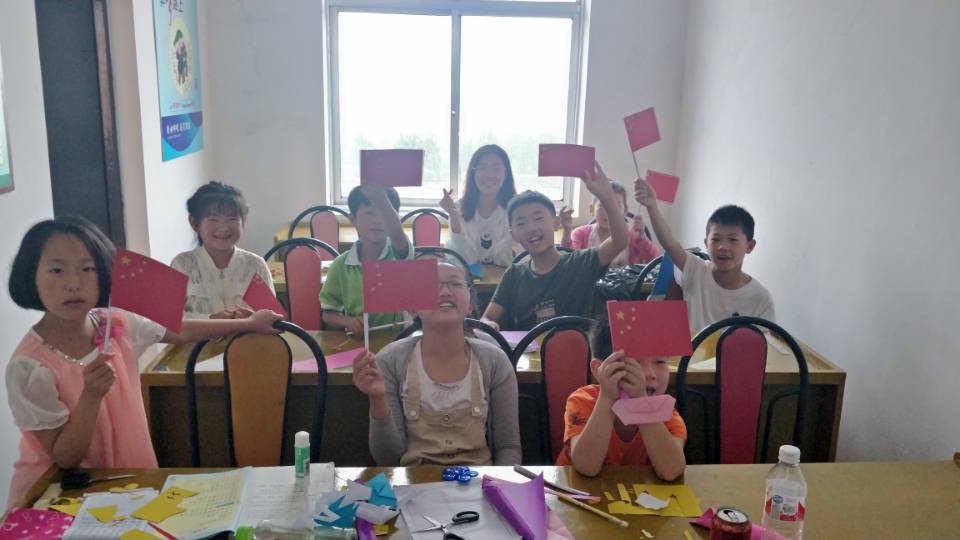 课堂上,孩子们聆听着支教队员讲述老兵爷爷的故事,每一个稚嫩的脸庞都异常庄严肃穆,听着过去的故事,孩子们心中也在畅想着未来的自己。在谈及未来的梦想时,有的孩子说想当画家,描绘森林和城市,记录城市的发展,保存时代的记忆;有的孩子说想做一名狙击手,参加维和行动,守卫国土边疆。人人都表示一定要通过自己的努力为祖国未来的建设添砖加瓦。孩子们的爱国情怀同样高涨,在队员们的帮助下自行制作了五星红旗,他们说,中间最大的五角星就是我们的祖国,周围的五角星是我们每一个为祖国奋斗的人......