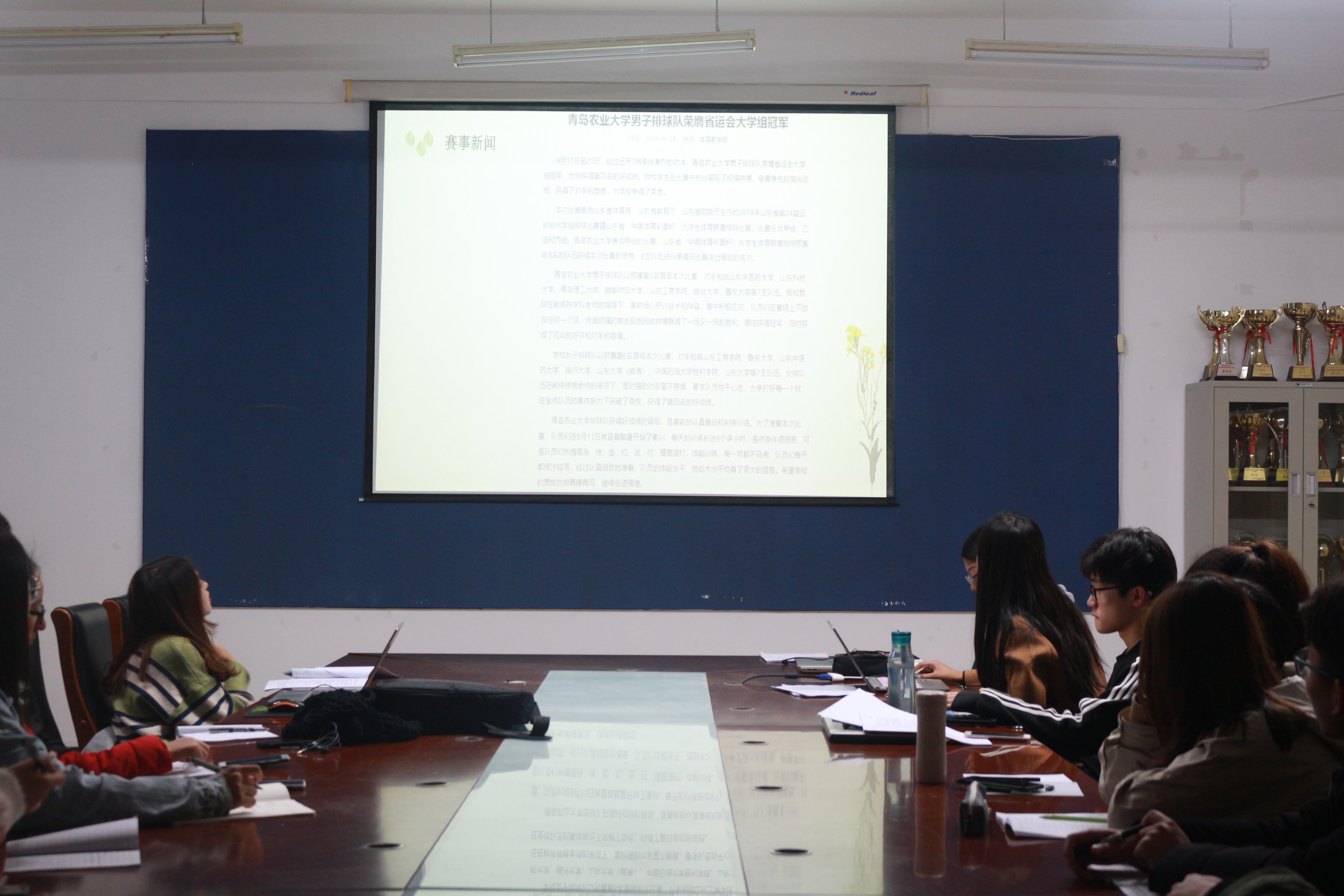 会议伊始,干事周苗苗以PPT形式向实习干事清晰条理地讲解了新闻写作的基本要求,强调稿件应具有时效性和严谨性。具体新闻例文的讲解,使得与会成员对新闻写作有了更深刻地认识。随后,干事马上原对相机的使用和新闻摄影的要求做了详细的讲解,他强调,新闻摄影应找好角度,照片的多角度拍摄利于全方位地记录活动过程。会议最后,王冠颖做出总结,希望在坐人员经过培训,能够真正掌握新闻的写作要求,一起为公司的宣传工作作出努力。