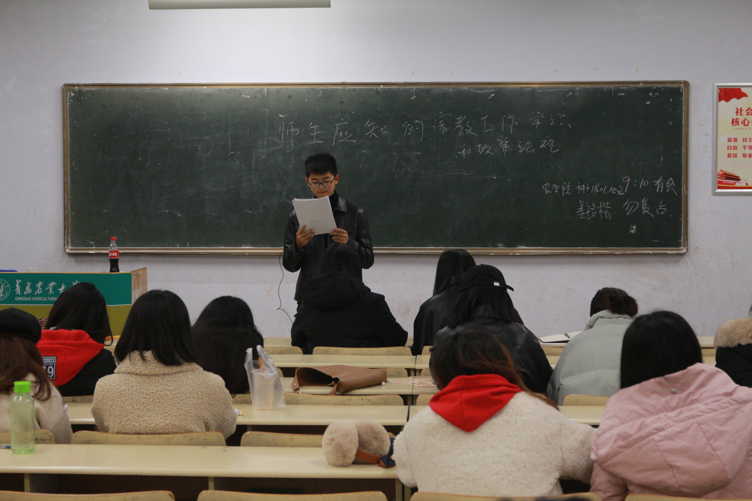 12月1日,ladbrokes立博在教学区开展“师生应知的宗教工作常识”主题团课,2018、2019级全体同学参加。
