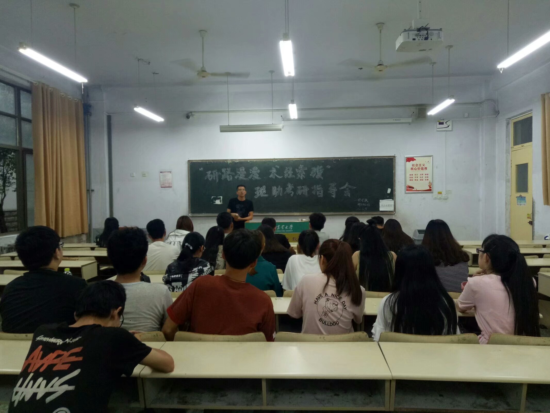 6月25日,在班主任和班助的带领下,种子1602班全体同学于教学楼进行了题为“研路漫漫,求经索骥”的考研指导会,班助徐铭圻将自己的考研经历与总结经验与同学们进行了分享交流,解决许多同学在关于考研问题上存在的疑问。