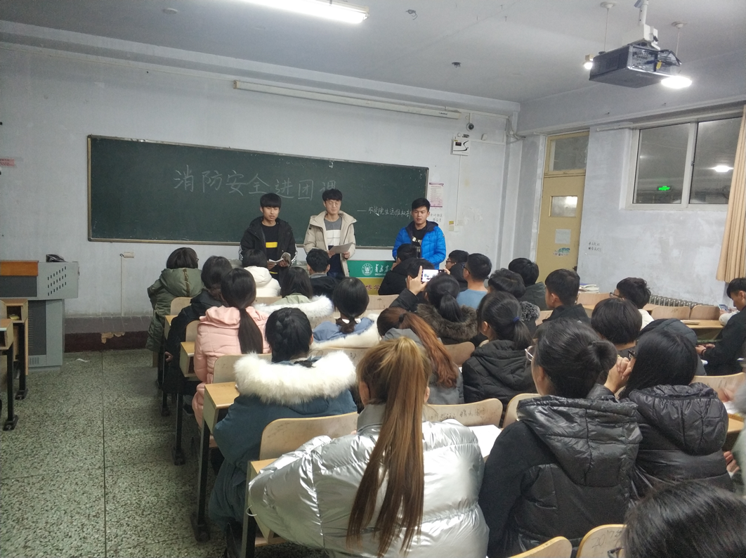 12月23日,ladbrokes立博于教学楼开展消防安全进团课的活动,旨在让同学们了解消防常识,提高自我的保护能力。员工代表孙培峰,李亚伟,侯圣玺担任主讲并主持活动,2018级同学积极参加。