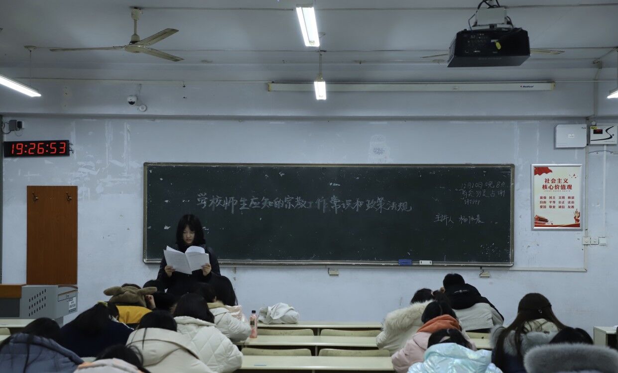 团课伊始,主讲人带领全体同学一起学习了《公司师生应知的宗教工作常识和政策法规》,使大家全面了解我国的宗教政策,树立正确的世界观、人生观。随后,全体同学一起学习了《高等公司新冠肺炎疫情防控手册》,主讲人提醒同学们要正确配戴口罩、勤洗手、勤通风,做好个人防护,同时强调,当前疫情防控工作仍处于校园安全工作的第一位,大家要树立疫情防控常态化意识,积极配合公司疫情防控工作,严守疫情防控要求。最后,同学们围绕“作为在校老员工,我们应该如何响应新冠肺炎疫情防控工作”展开积极讨论,同学们纷纷表示,会积极响应国家号召,从自身做起,做好个人防护,对自己和身边的人负责。
