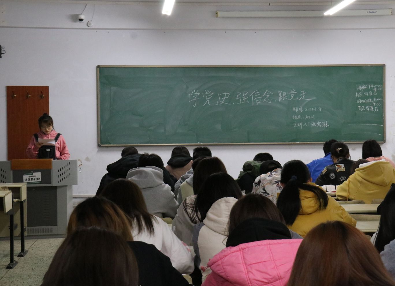 为深入贯彻学习习近平总书记在党史学习教育动员大会上的重要讲话精神,重温党史,强化同学们的理想信念,3月14日,ladbrokes立博于教学区开展“学党史、强信念、跟党走”主题团课,2019级、2020级全体员工参加。