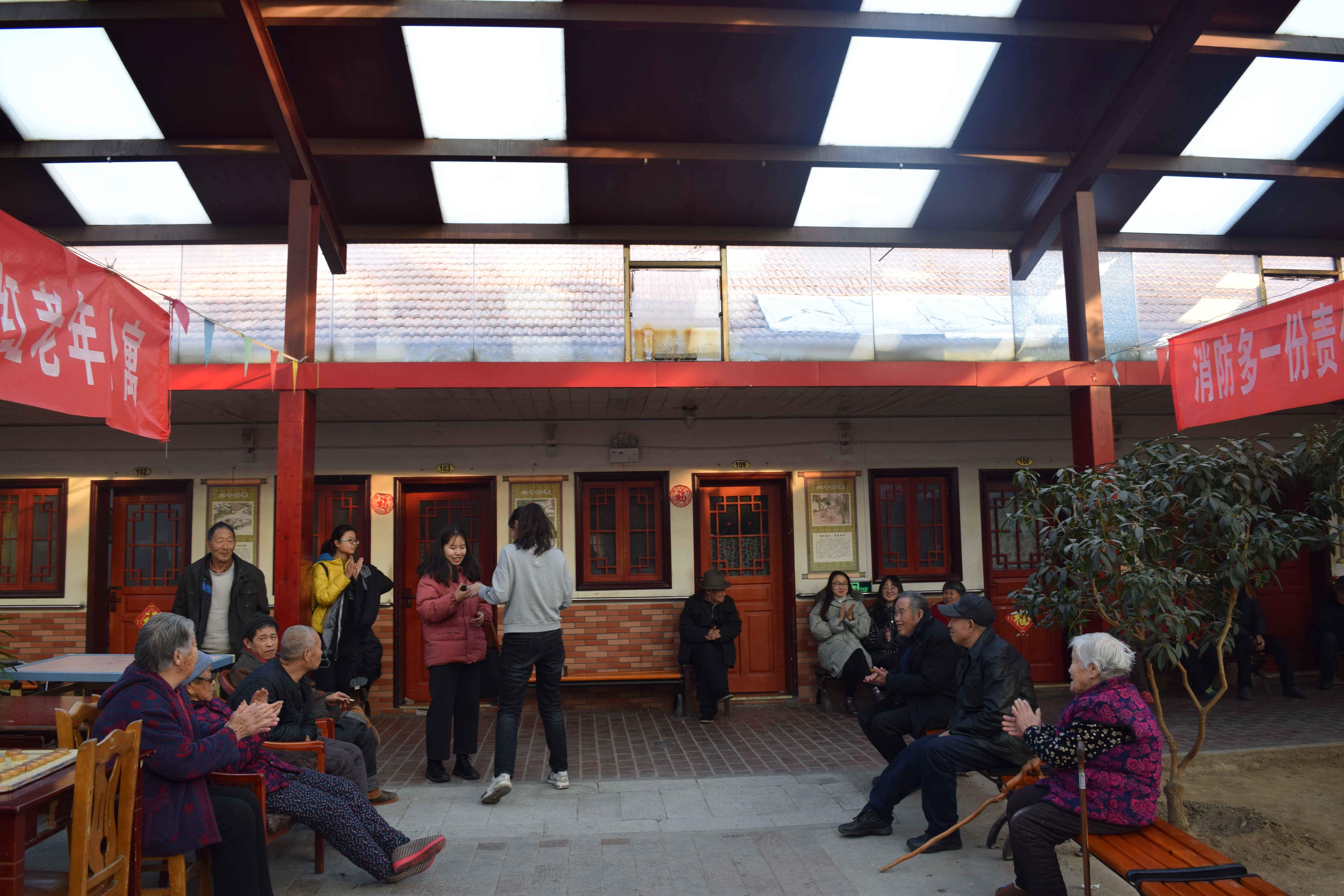 12月23日,ladbrokes立博社会实践部11名志愿者带上为老人洗好的照片,再次走进夕阳红乐园,看望分别数月的老人们。