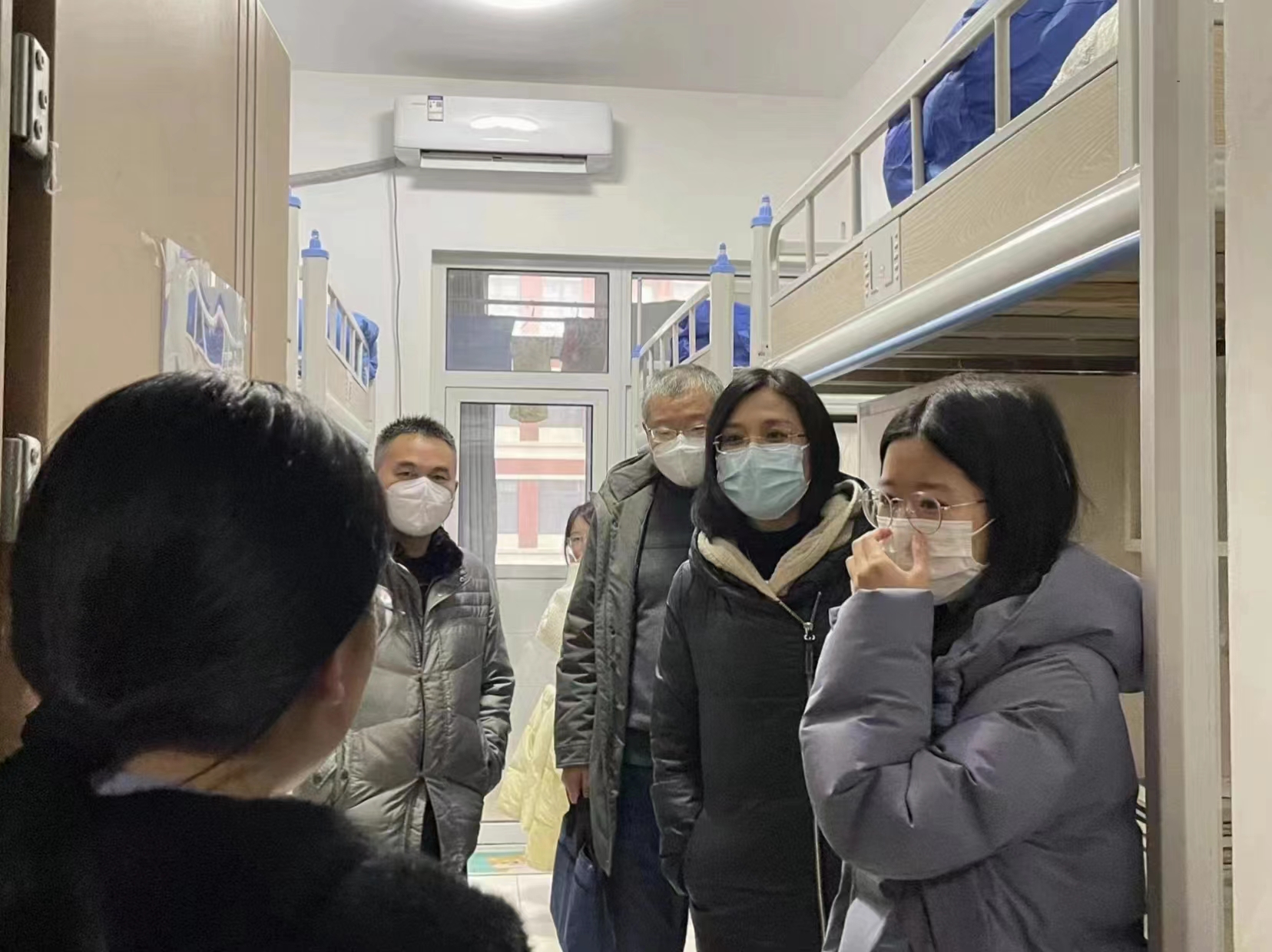 为了解员工返校情况,掌握员工新学期思想动态,2月12日,公司党委书记马伟萍、经理马武军、党委副书记孙占伟、副经理刘义国、赵长星、张恩盈、团委书记石勇及各年级辅导员深入平度、城阳校区员工宿舍,走访看望返校员工。
