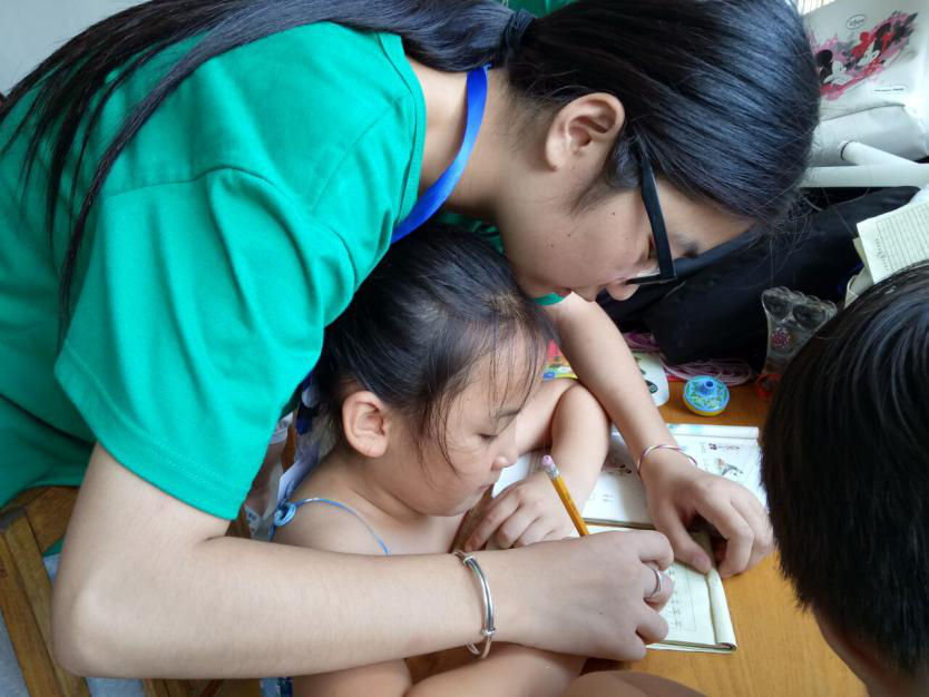 在耐心地讲解此次义务支教的目的后,村民们热情地把孩子送到了实践小分队临时搭建在村委会的课堂里。在对这些孩子的年龄、学习方式等基本受教育情况了解后,实践小分队根据年龄分成骨朵班(幼儿班),苗苗班(小学班)和种子班(初中班),根据班别进行不同阶段的课堂教学。