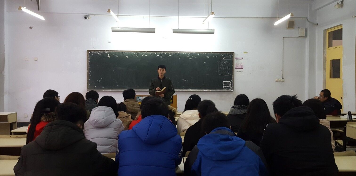 12月20日,烟草1501班举行考前动员大会,会议由班长程浩楠主持,班主任郭磊和全体同学参加。