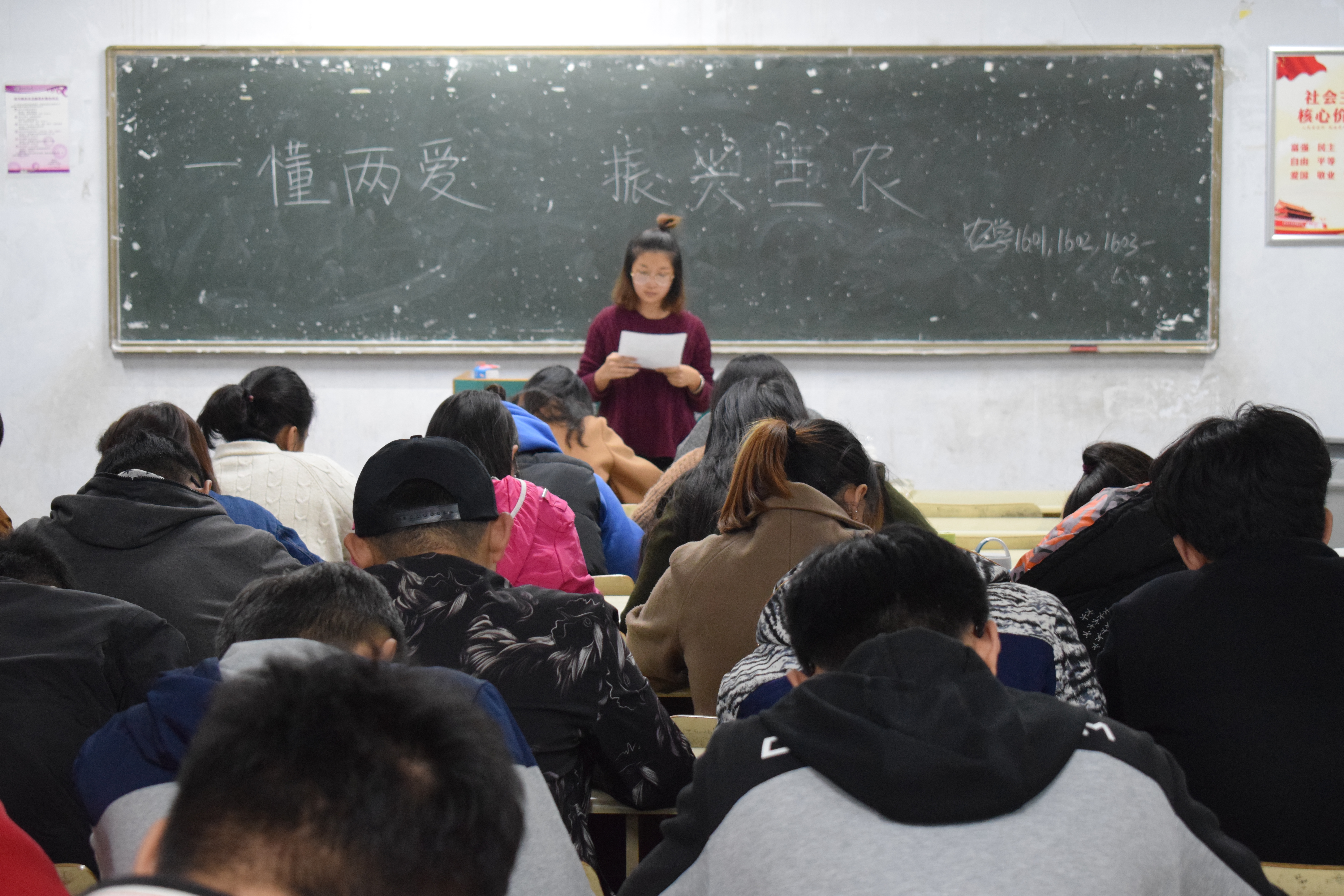 11月12日,2016、2017级各班在教学区A区举行“一懂两爱,振兴三农”主题团课活动,团课由班级团支书主持。各班员工积极参加,并认真做好团课笔记。