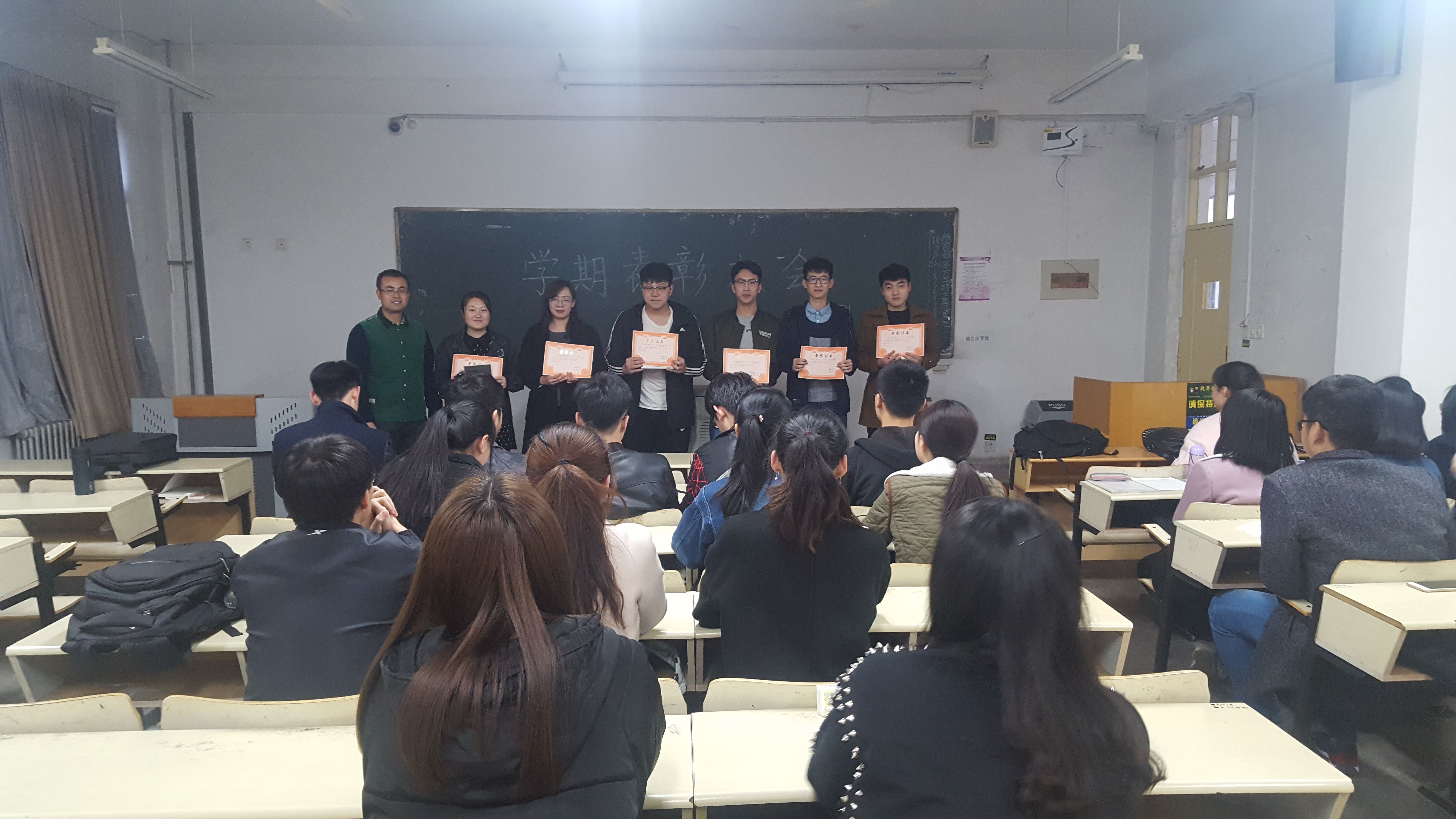会议伊始,程浩楠对上学期成绩进行总结,宣读三好员工、优秀员工干部、班级优秀员工标兵以及进步标兵名单,郭磊向优秀同学颁发奖品并进行表扬。郭磊表示不论将来的方向是考研还是就业,目前都要以学业为主。他以进步标兵王雪雁和赵明惠为例提出:同学们要擅于调整自己,无论是生活、学习还是感情方面都要找到最适合自己、最积极的那一面。大家不只要和自己比较,也要和周围同学比较,只有在比较中才能不断进步,成就更好的自己。