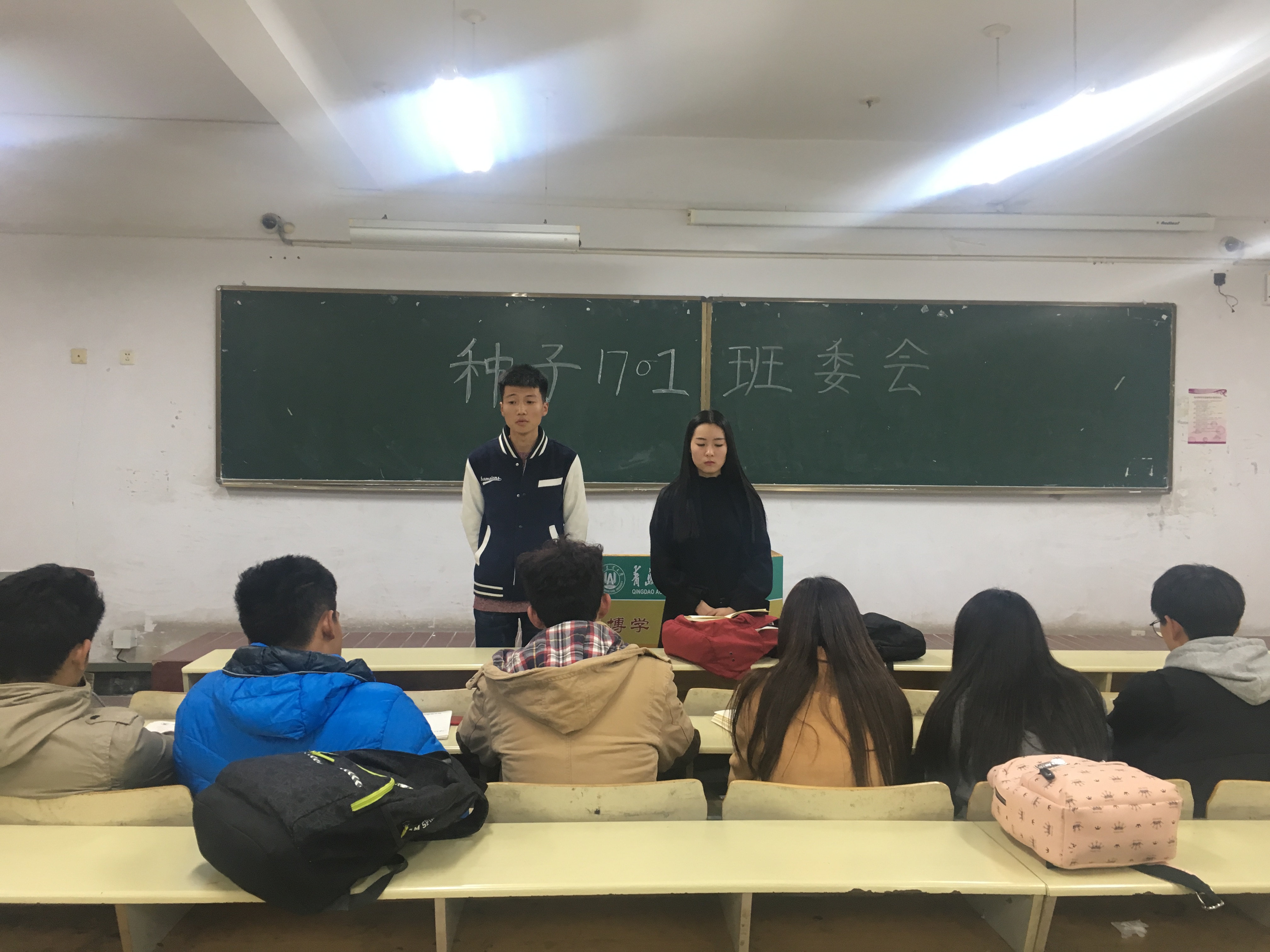 11月7日,种子1701班在教学区C区召开第一次班委会,班助和全体班委参与此次会议。本次会议主要对前段时间的工作作出总结,并对下一步班级工作进行规划。