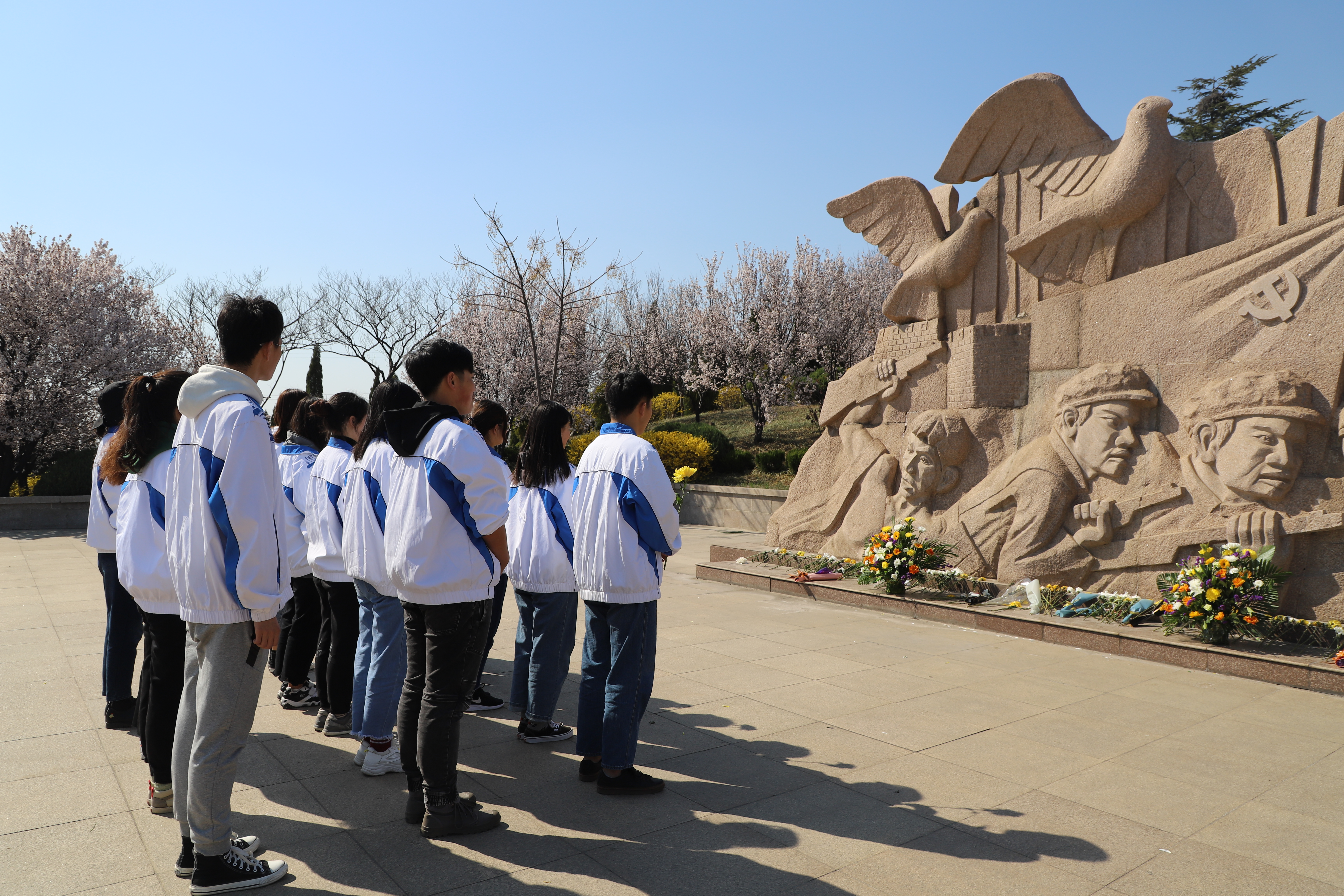 在负责人的带领下,全体同学怀着严肃庄重的心情参观了革命烈士纪念碑、革命烈士陵墓,通过向烈士敬献鲜花、庄严三鞠躬、默哀一分钟等方式来表达对革命先烈的哀悼之情。随后,员工代表王申童于纪念碑前发言,并带领同学们庄严宣誓,承诺立志学习,弘扬革命先辈的爱国精神,发扬艰苦奋斗的优良传统,努力成为一名合格的共产主义接班人。活动结束后,“青马工程”一期班于生物楼N区组织开展了祭扫活动感悟交流会,同学们积极参与,各抒己见,在讨论中认识当今美好生活的来之不易。