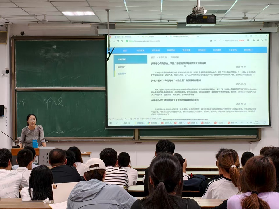 贾芸喆围绕“双创”竞赛、大创项目及社会实践三类项目,系统阐释了申报条件、评审标准与活动时间,帮助同学们构建起完整、规范的认知框架。宋健、周晨、倪金岚、吕兴菲四位学长学姐依次介绍实验室所在位置和研究定位,帮助大家了解实验室信息,确保后续科研训练能够高效、有序开展。魏雪、李九硕两位学姐结合自身参赛经历,围绕项目选题、团队协作、备赛技巧等方面展开,分享了具有操作性的经验与策略,为同学们提供了可借鉴、可复制的实施范式。最后,王春燕老师对本次活动进行总结,勉励同学们把握机遇,主动将专业知识转化为解决实际问题的能力,积极投身创新实践,努力成长为德才兼备、知行合一的高素质人才。