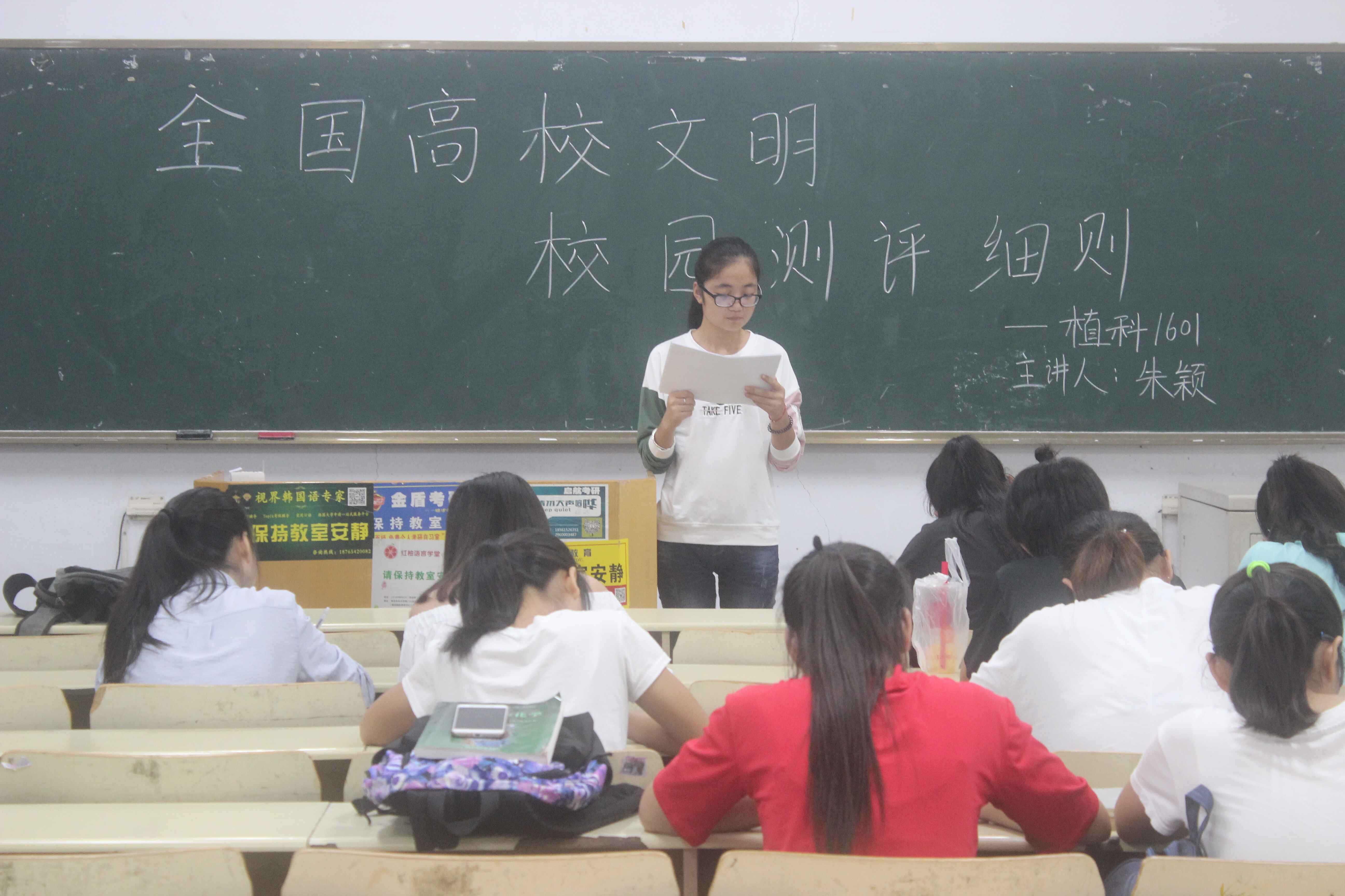 根据中央文明办、教育部制定的高校文明校园标准,ladbrokes立博于9月3日在教学区开展“育人为本,德育为先”主题政治学习活动,学习《全国高校文明测评细则》,16级全体同学积极参加。