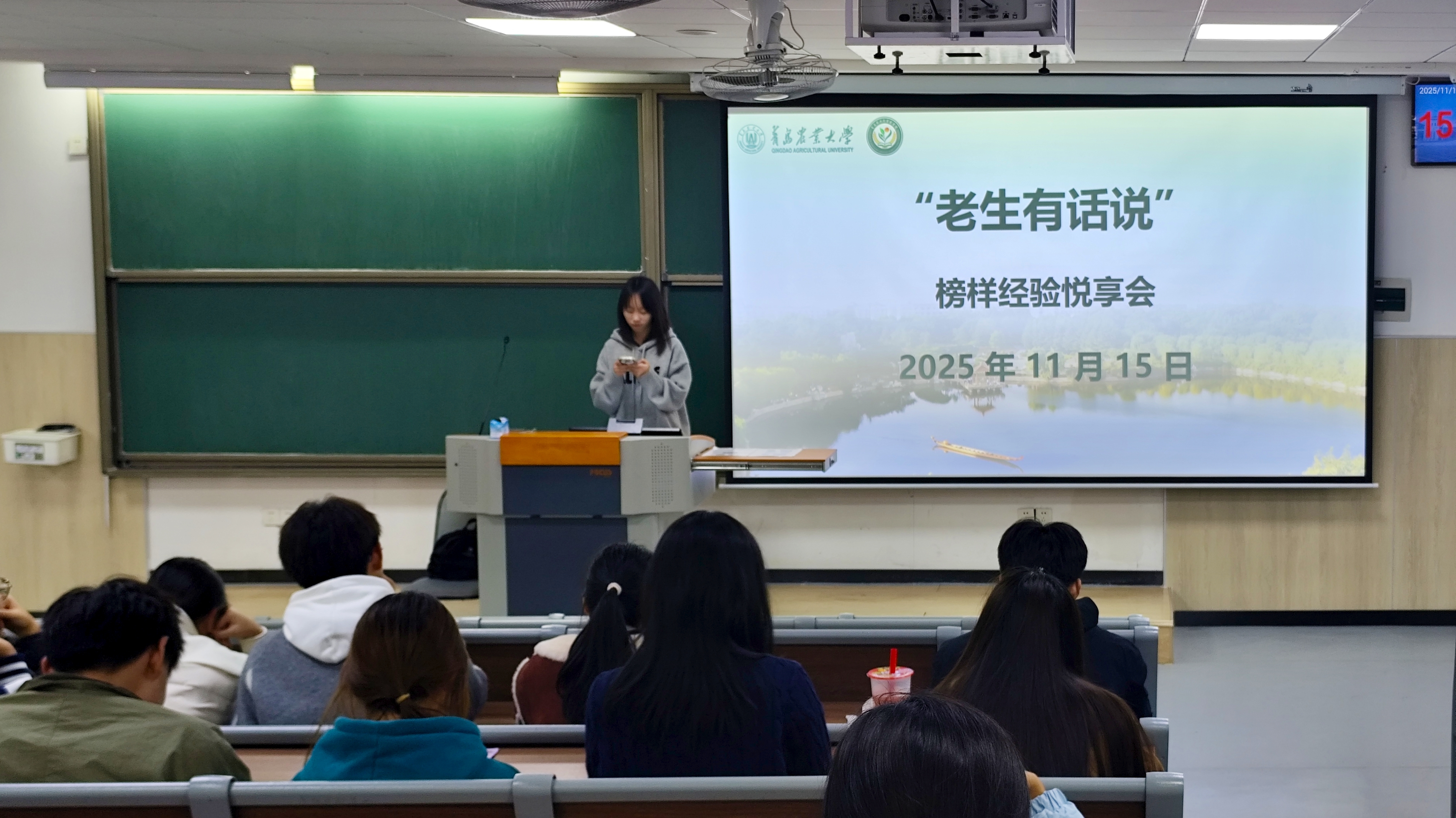 悦享会上,三位优秀学姐为学子们带来成长与升学的清晰指引。保研至中国农业科公司的程子萍学姐系统梳理了公司推免资格的核心条件与完整流程,深度解析“学业—科研—竞赛”三维协同的提升路径,并以自身经历为例,着重强调“大一打基础、大二提实力”的递进式成长节奏,希望学弟学妹们兼顾学业的同时注意身心健康。保研至吉林大学的王淑贤学姐以“专业排名优先”为主线,与同学们一起拆解高绩点备考、科研项目深耕的实操细节,寄语大家要以学习为根本,方能行稳致远、厚积薄发。梁一诺学姐则聚焦“强农”实践,分享时间管理、多任务平衡的落地技巧,以科研、志愿经历诠释青春担当,为学业规划与实践成长提供清晰思路。三场分享从规划到落地,为学子的成长与发展精准导航。